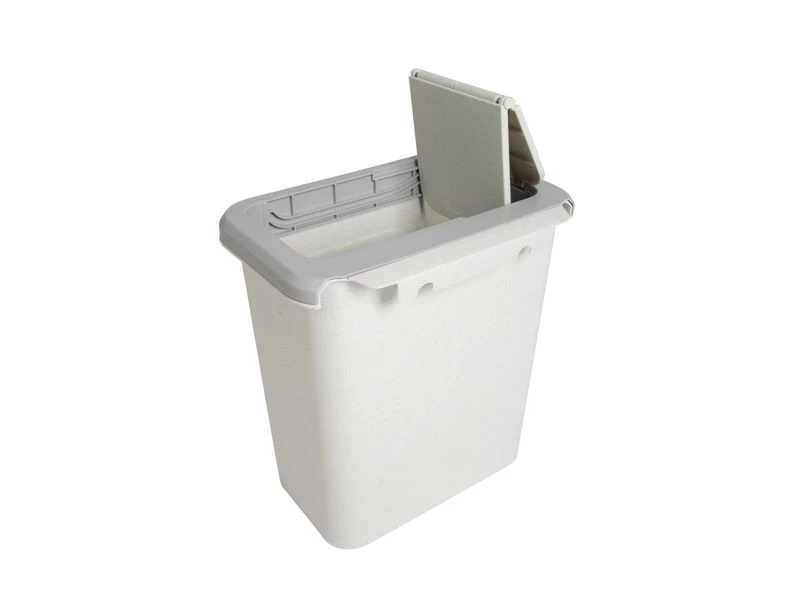 Een zeer praktische vuilnisbak. De deksel van de prullenbak is naar de zijkant te schuiven. Inclusief wandbeugel en is ideaal voor in de caravan of camper.