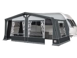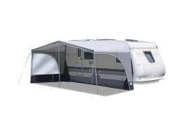 Een tarp met een extra sterke pees voor de caravanrails. Deze tarp is snel en eenvoudig te bevestigen aan de caravan en kan ook opgerold vast worden gezet aan de caravan/camper. Daarnaast kan deze tarp ook los worden opgezet door middel van de zeilogen in de tarp en de meegeleverde scheerlijnen en haringen. Is waterdicht door de PU coating met een waterkolom van 2000 mm. Inclusief handige draagtas.