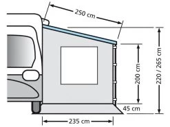 Te bevestigen aan een pees van de caravanrail of vrijstaand door middel van zeilogen.