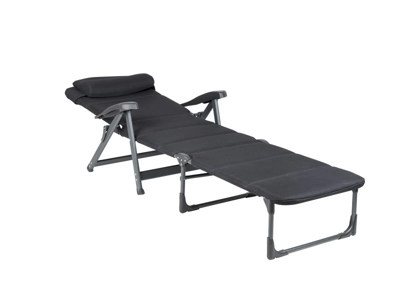 Een multifunctionele en uiterst comfortabele stoel. Deze stoel is door het unieke frame te gebruiken als ligstoel, om te zitten en als relaxstoel. Hierbij is de rugleuning verstelbaar in 7 standen. Deze stoel biedt maximaal comfort dankzij de gepolsterde 3D stof welke extra luchtdoorlatend is en de bevestiging van het elastiek aan de onderkant. Daarnaast beschikt deze stoel over een verstelbaar en zeer luxe hoofdkussen.