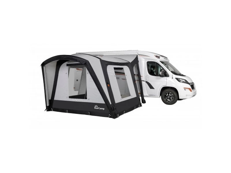 De Starcamp Discovery Air is de laatste toevoeging aan de camper collectie van Dorema. Deze oppompbare campervoortent heeft een vrijstaande constructie en is voorzien van het nieuwste lichtgewicht polyester tentdoek, waardoor deze campervoortent ideaal is voor korte vakanties! Het opbouwen van de Discovery Air KlimaTex tent met luchtslangen neemt slechts enkele minuten in beslag. De afritsbare tunnel zorgt voor een tochtvrije verbinding naar uw kampeervoertuig, maar biedt u ook de mogelijkheid om een dagje met de camper op pad te gaan terwijl u de Starcamp Discovery Air en zijn vrijstaande constructie achter laat op de camping.