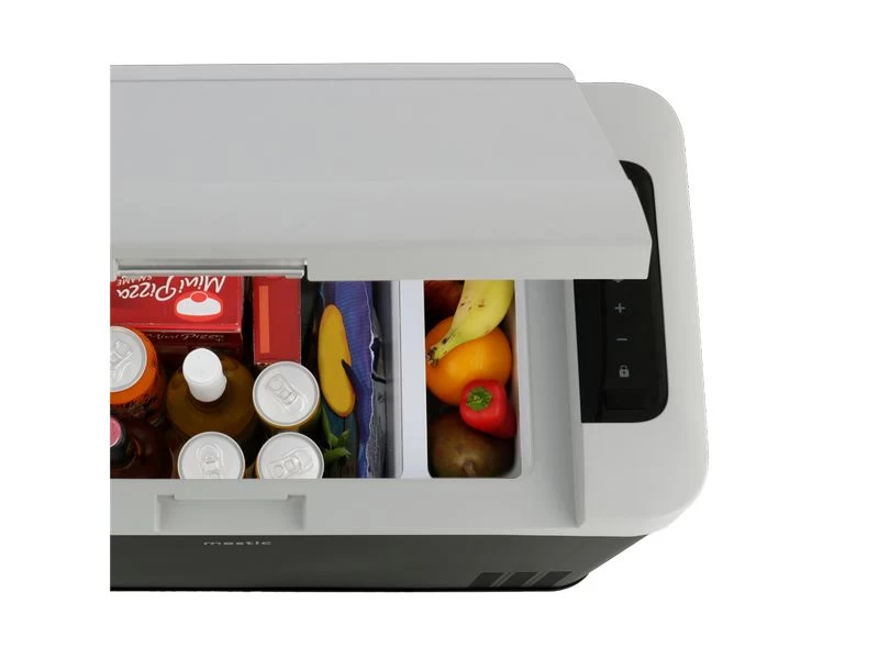 Deze compressorkoelbox van Mestic heeft een zeer krachtig koelvermogen en lijkt qua functioneren op de koelkast zoals u die thuis gewend bent. Hij heeft een koelvermogen van +10 °C tot -18 °C. Dat betekent dus dat u hem zelfs als vriezer kunt gebruiken. U kunt de gewenste temperatuur eenvoudig instellen op het touch LCD-display van de box. De omgevingstemperatuur heeft geen enkele invloed op de koelprestaties van deze koelbox, dus u kunt altijd lekker bij de camper of caravan genieten van een verkoelend ijsje! Deze koelbox heeft hetzelfde koelvermogen op 12 V als op 230 V. U kunt hem dus in de auto gebruiken, maar ook aansluiten op een stopcontact. Hiervoor heeft u wel de bijbehorende adapter nodig.