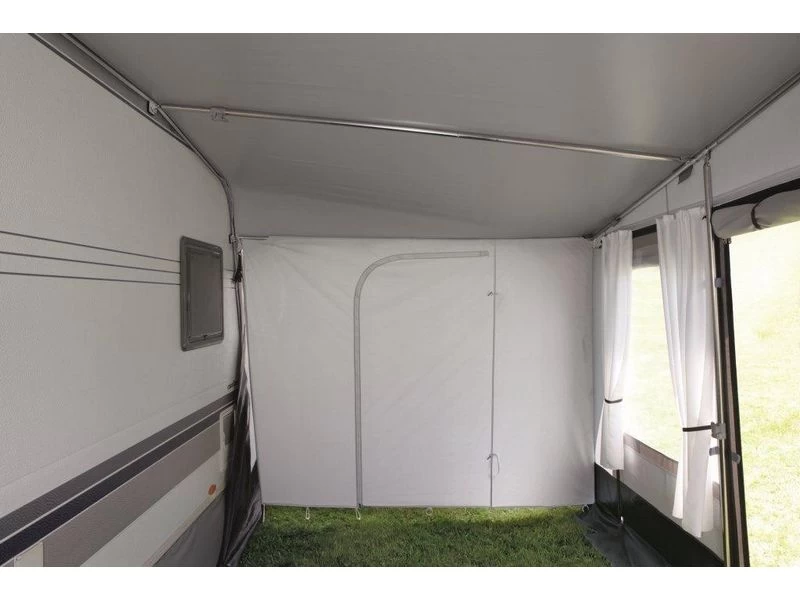 Tussen- of scheidingswand , speciaal bedoeld voor afscheiding tussen aanbouw en voortent.